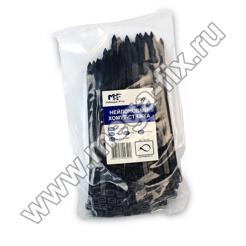 Хомут нейлоновый MGF 4,6х500 мм черного цвета (100 шт./ уп.) mega-fix